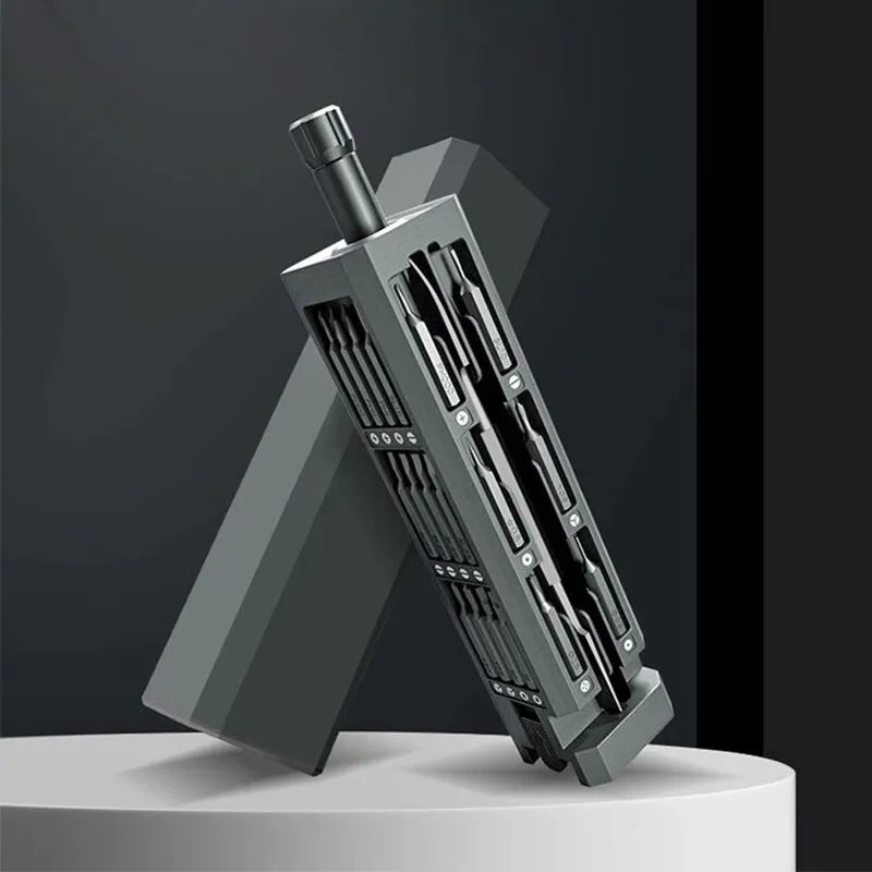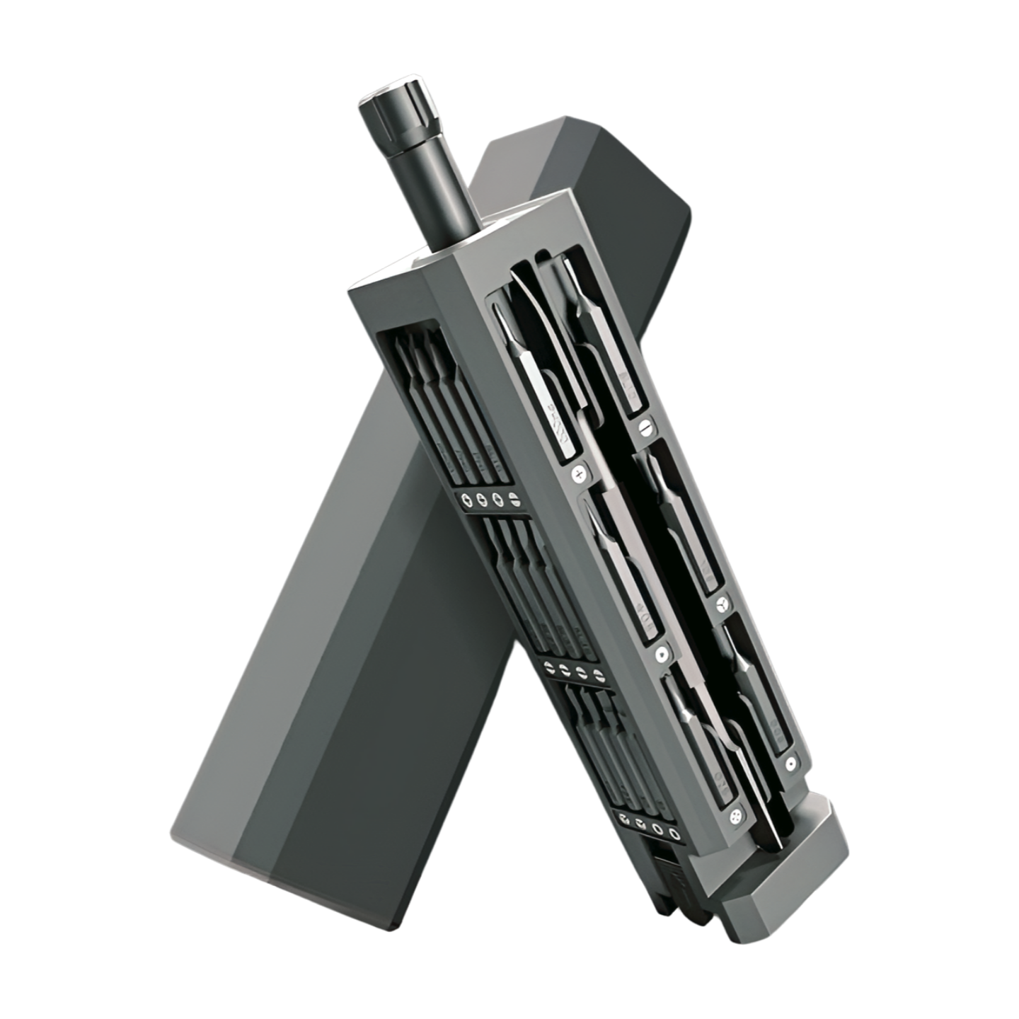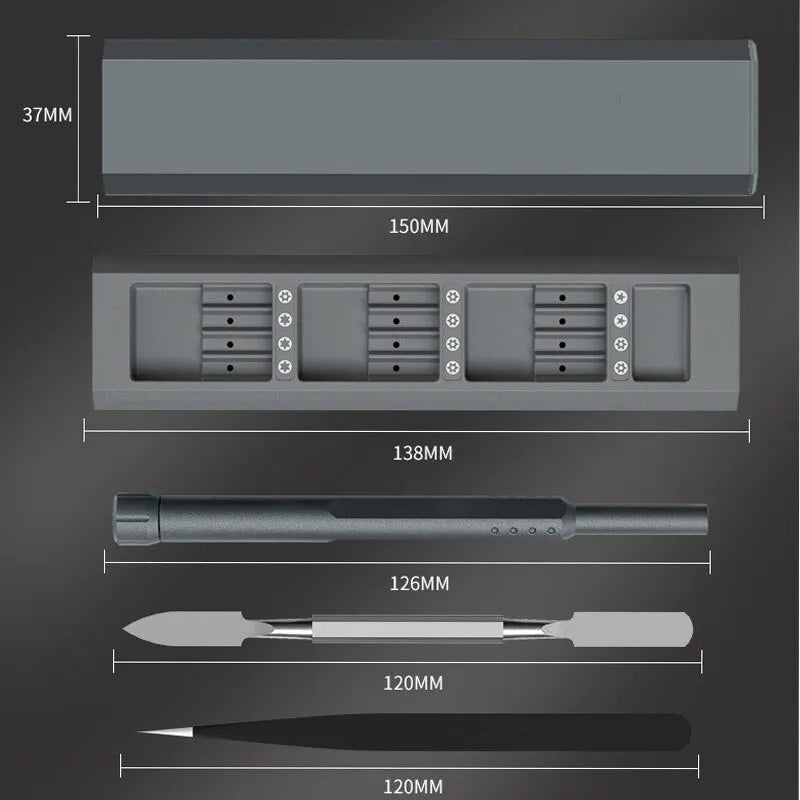 Dieses 44-in-1-Präzisionsschraubendreher-Set umfasst 44 Schraubbits, darunter Kreuzschlitz, Pentalobe, Torx, Sechskant, Schlitz, Dreikant, Vierkant und mehr. Es ist das ideale Werkzeugset für die Reparatur von Elektronik, Laptops, Handys, PCs, Uhren, Tablets, Brillen, Kameras, Spielzeug, Modellen und anderen Geräten. Hergestellt aus hochwertigem S2-Stahl ist dieses Schraubendreher-Set robuster und langlebiger als herkömmliche CR-V-Legierungen. Jedes Bit ist magnetisch, wodurch Kleinteile sicher befestigt bleiben und die Arbeit erleichtert wird. Jeder Schraubendreher ist komfortabel zu handhaben, rutschfest und wird in einer eleganten Metallbox geliefert. Drücken Sie einfach die „ÖFFNEN“-Taste, um das Innere herauszuziehen und auf alle Bits zuzugreifen, die übersichtlich in ihren sicheren Fächern untergebracht sind. Das Set verfügt über ein kompaktes Aufbewahrungsdesign, sodass Sie es mühelos in einer Werkzeugtasche oder Hosentasche verstauen können. Dank der einheitlichen Anordnung und Größe der Zubehörteile bleiben die Teile sicher und steigern Ihre Effizienz. Ihre Zufriedenheit ist unsere oberste Priorität. Sollten Sie auf Probleme stoßen, kontaktieren Sie uns bitte für eine 100 % zufriedenstellende Kundendiensterfahrung.