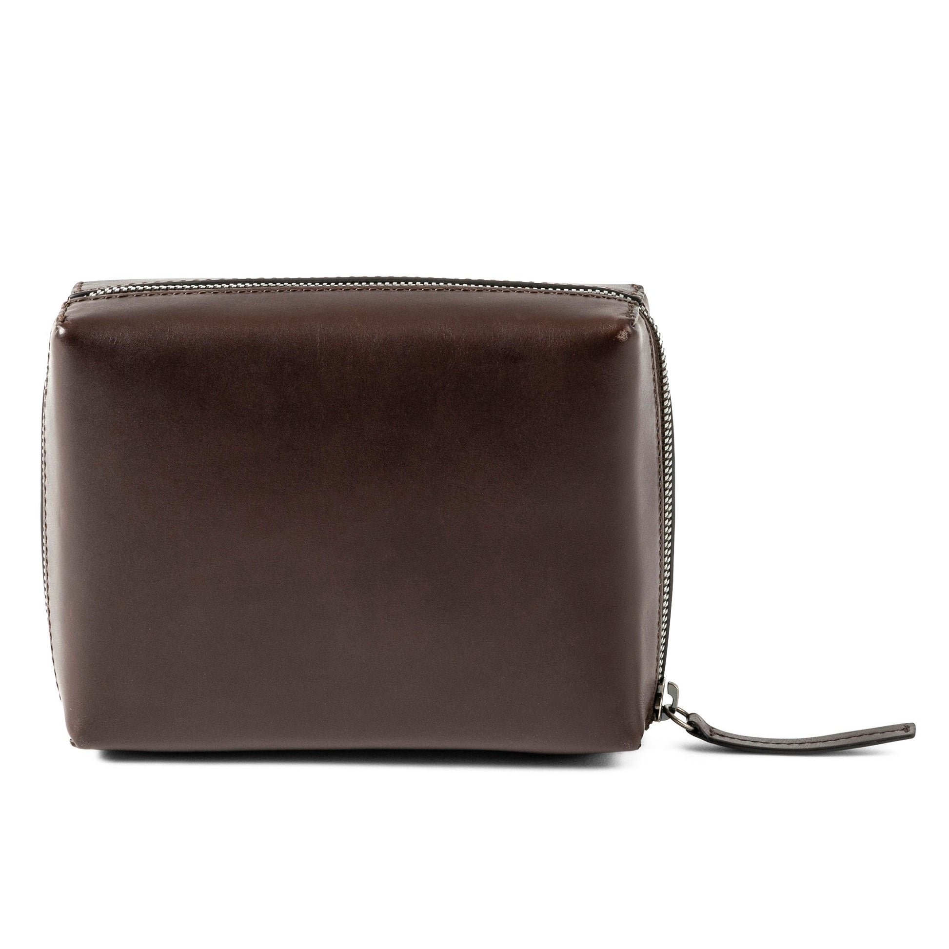 Multifunctional case for tech tools. Works well as a toilette bag. Interior pocket and elastic band on the inside. The vegetable tanned, aniline coloured grain leather ages naturally with time, and will vary in colour and surface texture.