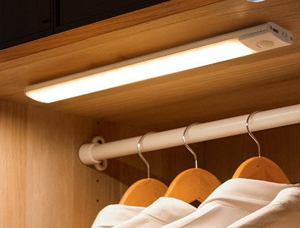 Praktisk laddningsbar lampa som tänder sig själv automatiskt när dörren öppnas.