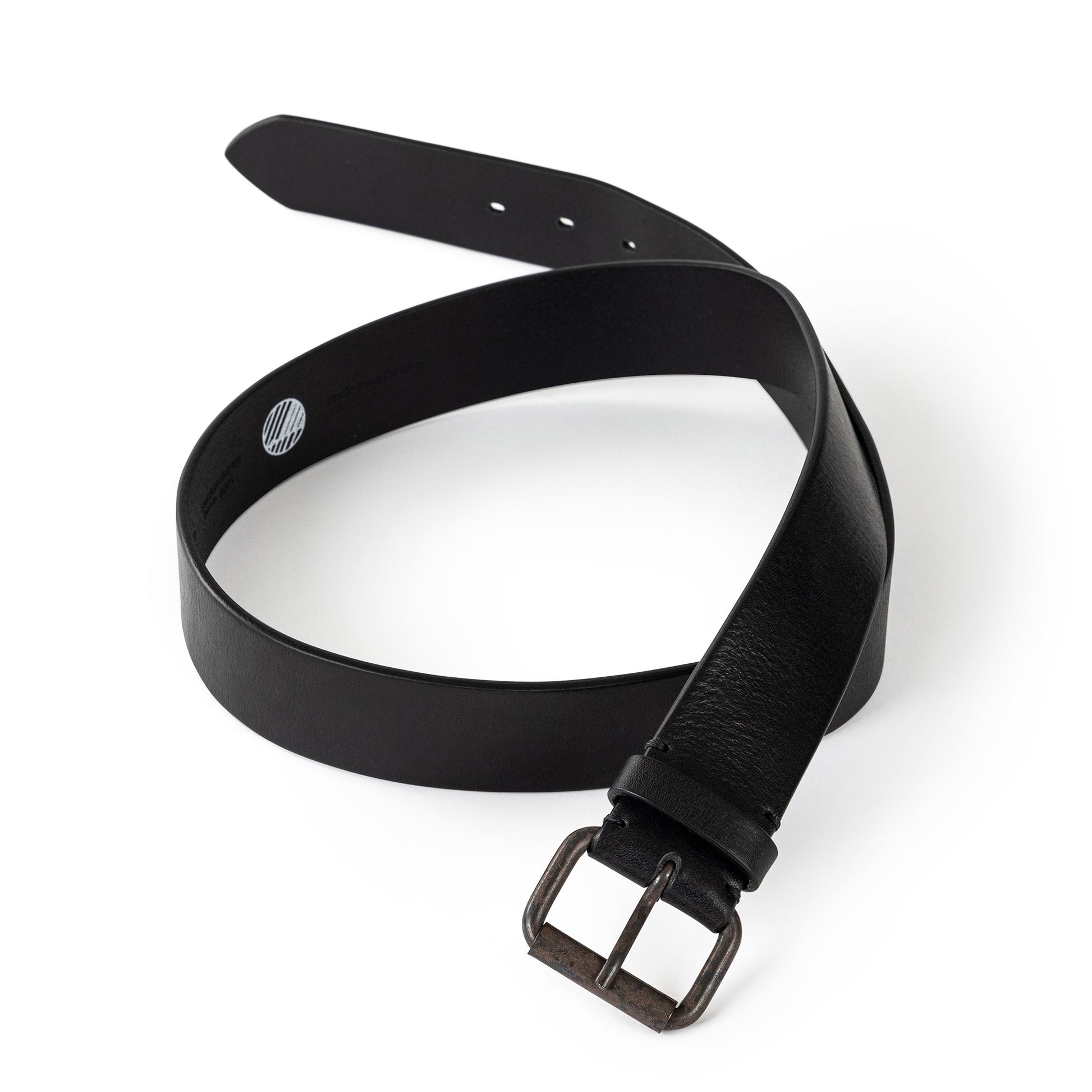 Classic leather belt with structured edges and buckle in oxidized metal. The vegetable tanned, aniline coloured grain leather ages naturally with time, and will vary in colour and surface texture.
