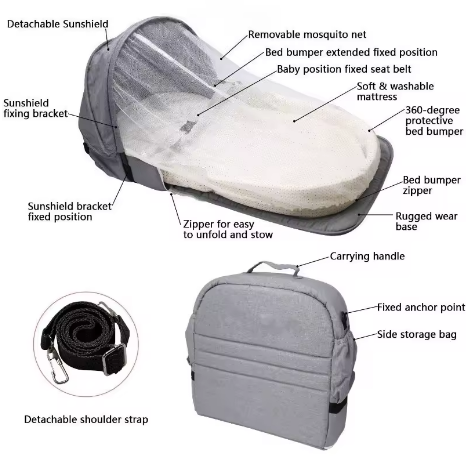Praktisk bärbar resesäng med eller utan myggnät.
