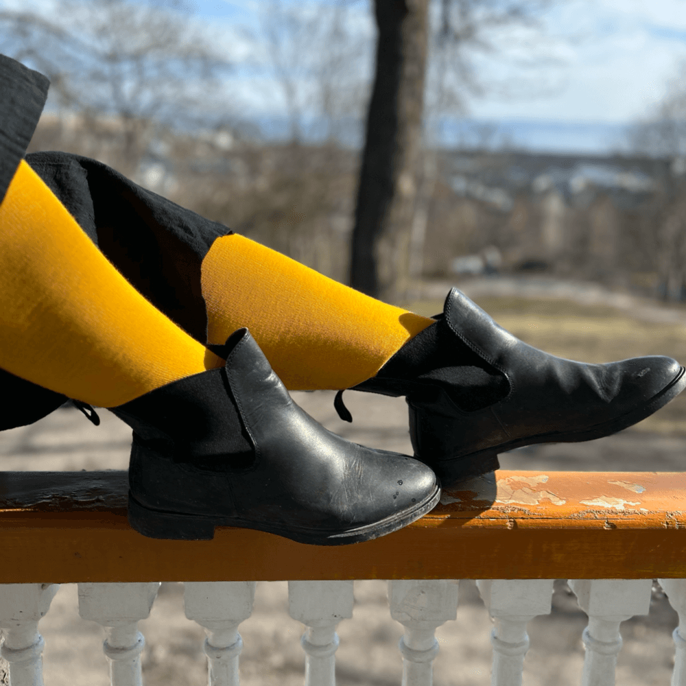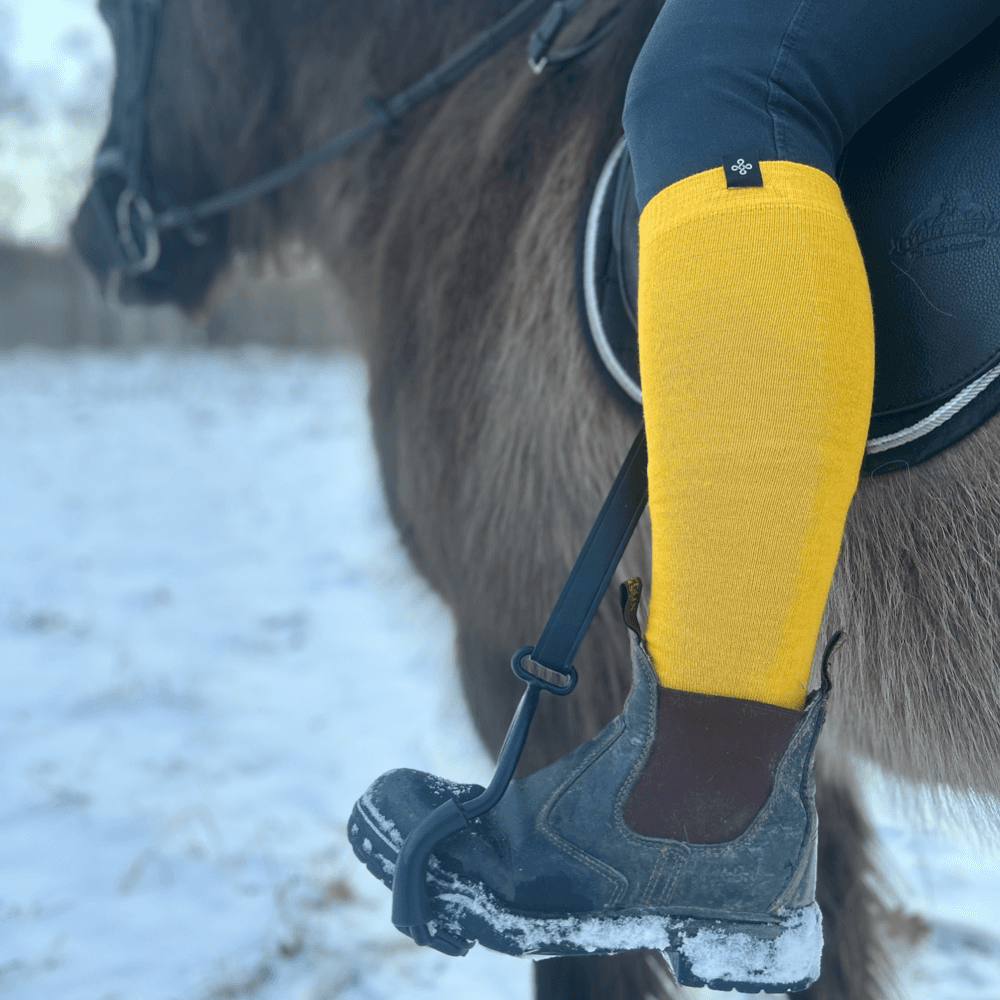 Reidsokkar Allround Sunna, ridstrumpa i färgen gul. Tillverkade i unikt hög andel mulesingfri merinoull, hela 75%, erbjuder dessa strumpor hög komfort och prestanda för varje ridtur och arbetspass i stallet.