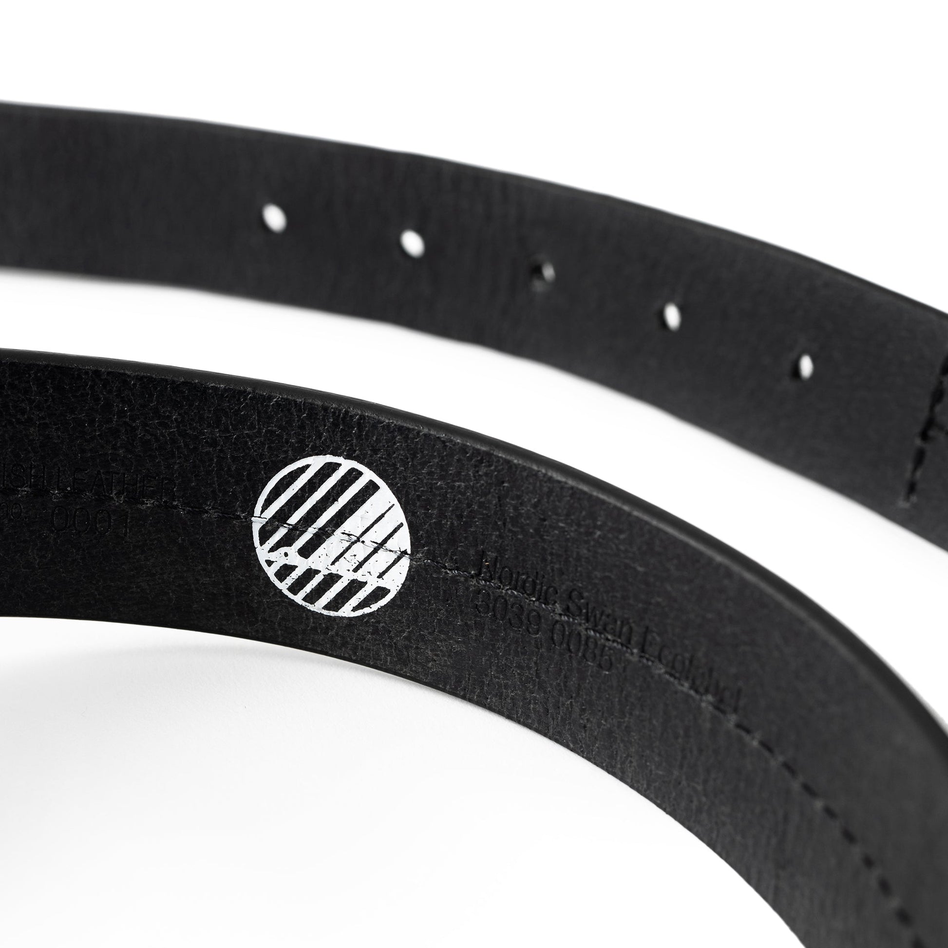Narrow leather belt with H-stithes as a decorative seam, treated edges and buckle in effective black-colored metal. The vegetable tanned, aniline-colored grain leather ages naturally over time, and will vary in color and surface texture. The belt works just as well for more dressed trousers as for jeans.