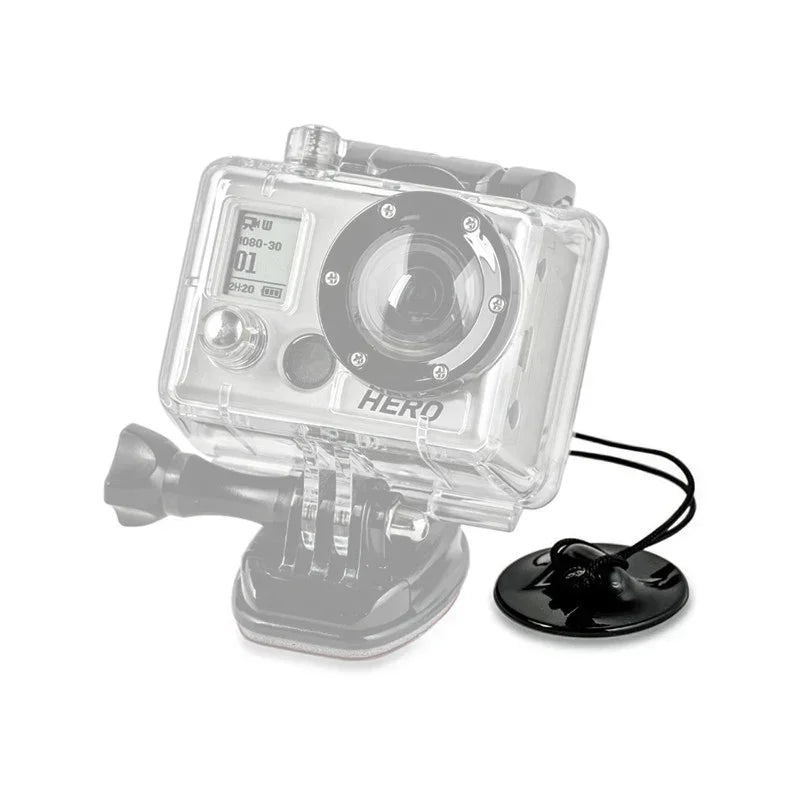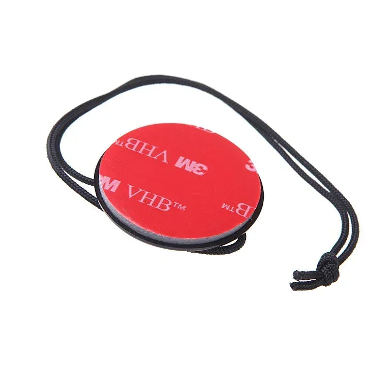 Du sätter fast säkerhetsfästet med 3M-tejp som sitter på brickan och fäster säkerhetslinan i din utrustning. Passar bra om du ska ha kameran på hjälmen, i skidbacken eller dyl.