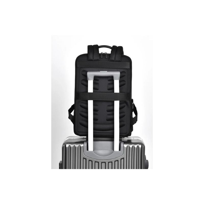 Invändigt hittar du ett smart organiserat facksystem som rymmer laptop, surfplatta, dokument och tillbehör – allt säkert och lättillgängligt. De vadderade axelremmarna ger hög bärkomfort hela dagen, medan USB-porten på sidan gör det enkelt att ladda mobilen på språng. Baksidan är anpassad för att fästas på resväskans draghandtag – en perfekt följeslagare för affärsresenärer.