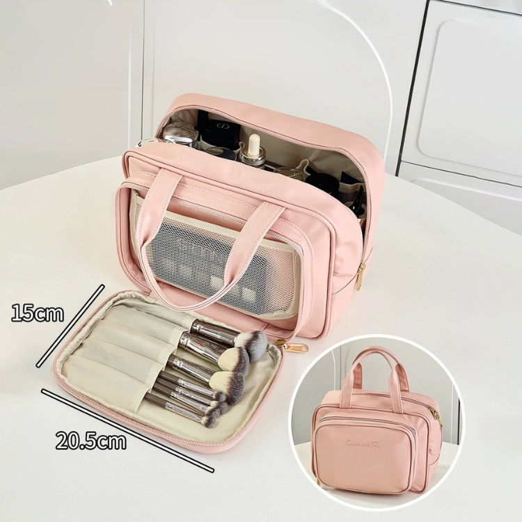 Sminkväska med borsthållare – Rymlig necessär med smart förvaring