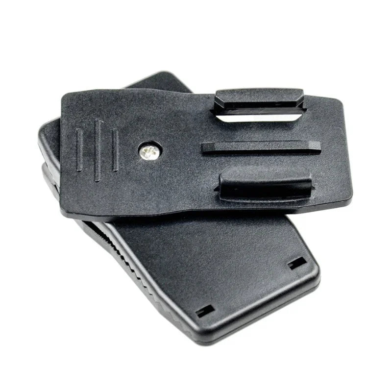 Ett smidigt litet snabbfäste som ser ut som en större klädnypa med kraftig fjäder och tandad käft för bästa grepp. Du fäster den i bältet, kepsen, ryggsäcken osv. och kan sedan vrida fästet 360 grader så du får den vinkel du önskar. På klämman sitter ett standard GoPro Quick Release-fäste.