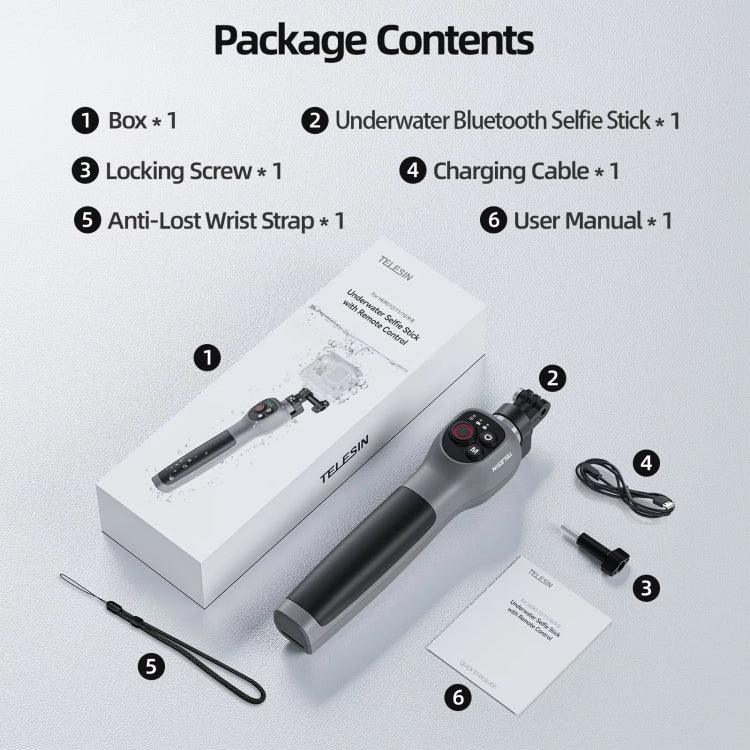 Telesin Selfiepinne Vattentät - 250-850mm med Fjärr till GoPro Hero13/12/11/Mini/10/9/8 Black / Max